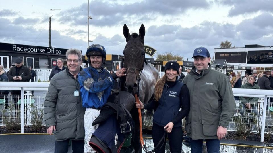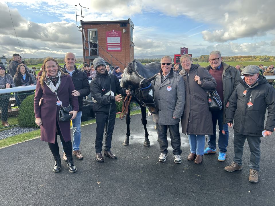 After breakfast we headed up to Bangor on Dee to watch Ridin Solo make his chasing debut. RS has been so consistent since he joined us, and we have always thought that a switch to fences would bring about improvement, although he would benefit greatly for his seasonal debut. Bangor do a great job for owners – the lunches are legendary, and with a full complement of 6 Club members attending, I was sadly going to miss out, that was until Fergal O’Brien came to the rescue and sorted me out with lunch as one of his owners was not going to make the track! Thanks Ferg!
