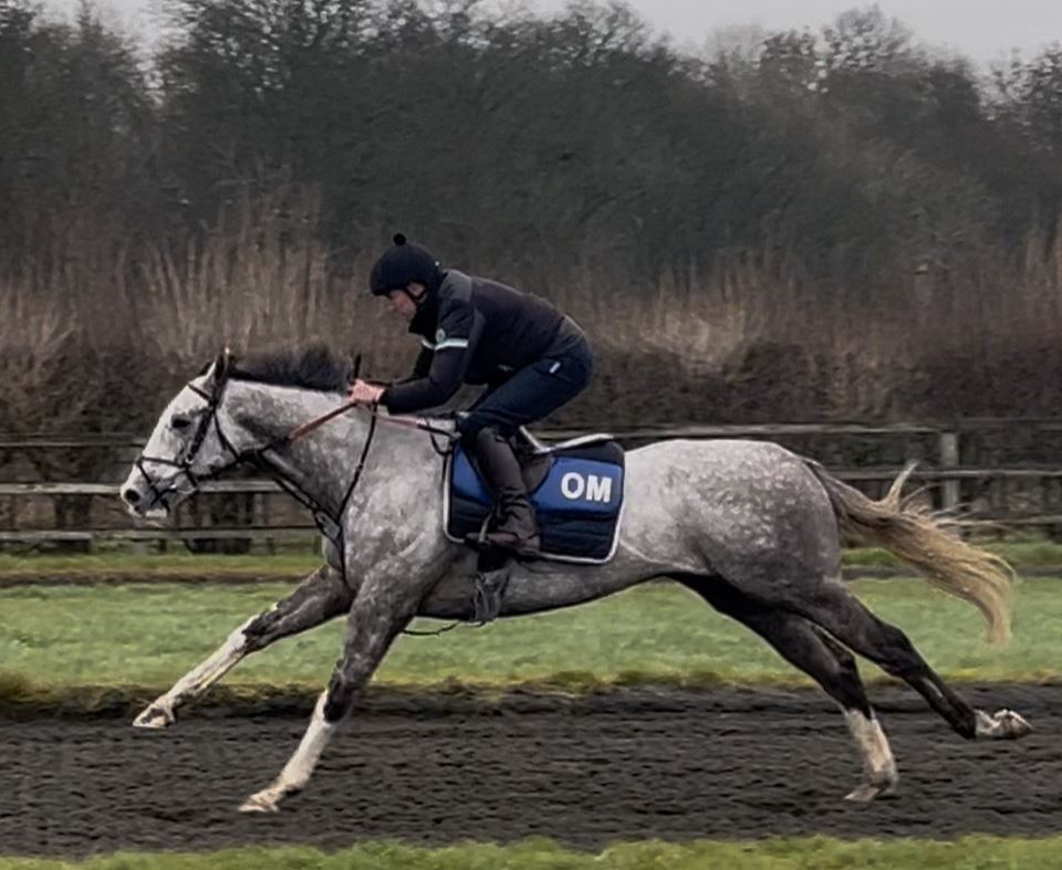 Tuesday – a cold one! Alan King sent through a video of AND SHE WAS working very nicely up Sharpridge. ASW had been ready to run before Christmas but had been found to be suffering with a respiratory infection ahead of declarations and was unable to run. A few easier days and a course of antibiotics saw her back to full health, and she has been working her way back up to full fitness. Judging by this piece of work she is getting very close to having another entry!