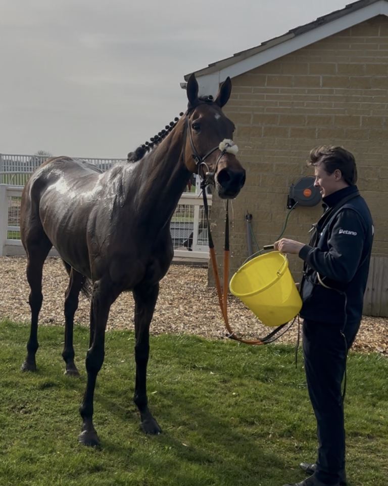 Having seen NS win in Wincanton, Jason was soon on with a video of his younger brother ‘FLOYD’ who is the spitting image of NS. He will soon be heading off on his summers break – but it was great to see him canter on the sand gallop and then school over hurdles! He’s very good – and Maguire still has it doesn’t he??